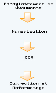 3. Reconnaissance optique de caractères (OCR) : conversion des documents du format image au format texte pouvant être lu par des traitements de texte ;